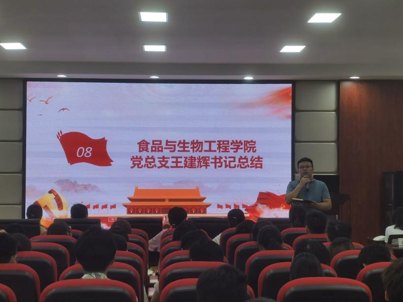 2022年7月1日,437必赢会员中心食品与生物工程学院食品本科生党支部在工科三号楼A320举办《习近平谈治国理政》第四次读书分享会。食品学院党总支书记王建辉、学院副院长方芳、许宙、教工党支部代表陈永发和学工办老师胡佳佳等师生近80余人参加此次活动。