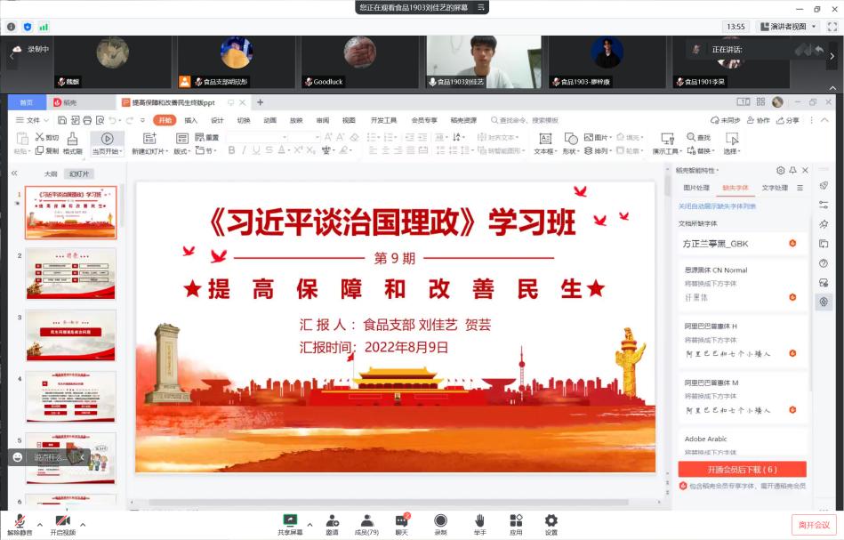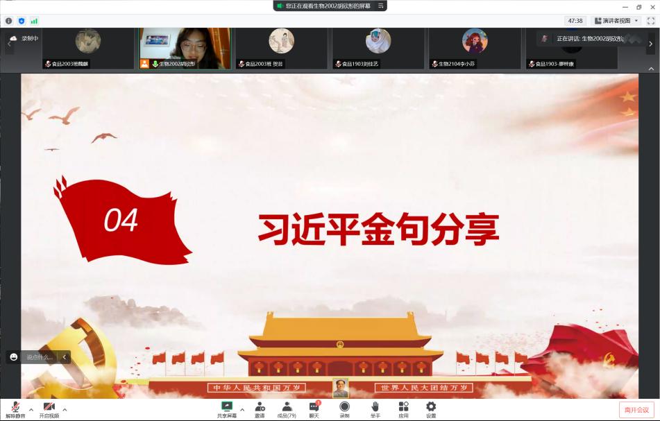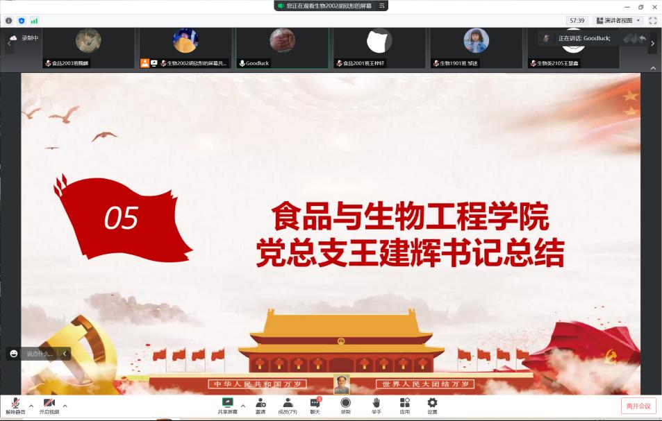 2022年8月9日,437必赢会员中心食品与生物工程学院食品本科生党支部在腾讯会议线上举办《习近平谈治国理政》读书班第五次读书分享会。食品学院党总支书记王建辉、党总支副书记练黎旋、学工办老师胡佳佳等师生近100余人参加此次活动。
