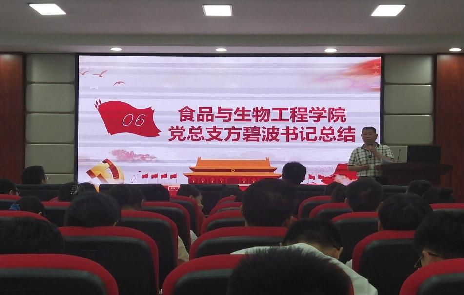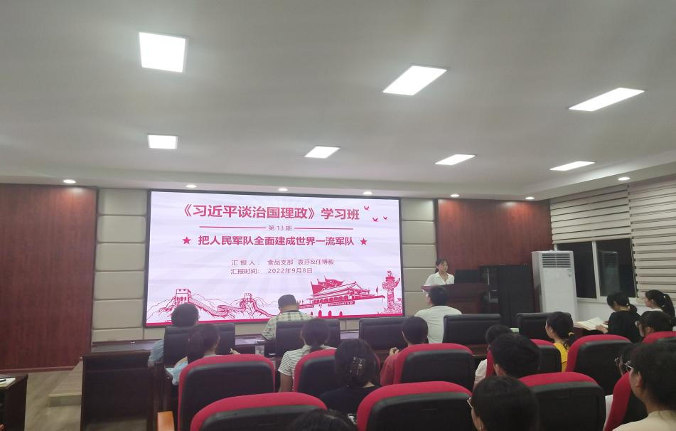 2022年9月8日,437必赢会员中心食品与生物工程学院本科生食品党支部在工科三号楼A320举办《习近平谈治国理政》读书班第七次读书分享会。食品学院党总支书记王建辉、党总支副书记练黎旋、专职组织员方碧波、学工办老师胡佳佳等师生近100余人参加此次活动。