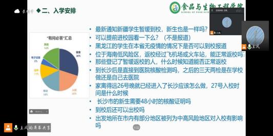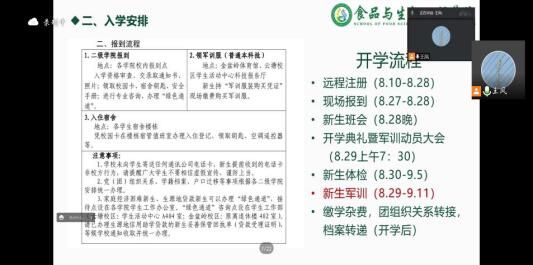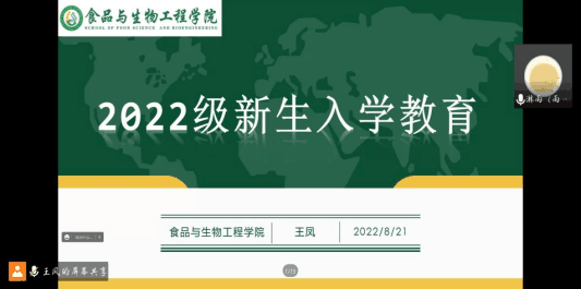 8月21日上午,437必赢会员中心食品与生物工程学院22级全体新生线上召开了第一次年级大会,辅导员王凤老师主持。
