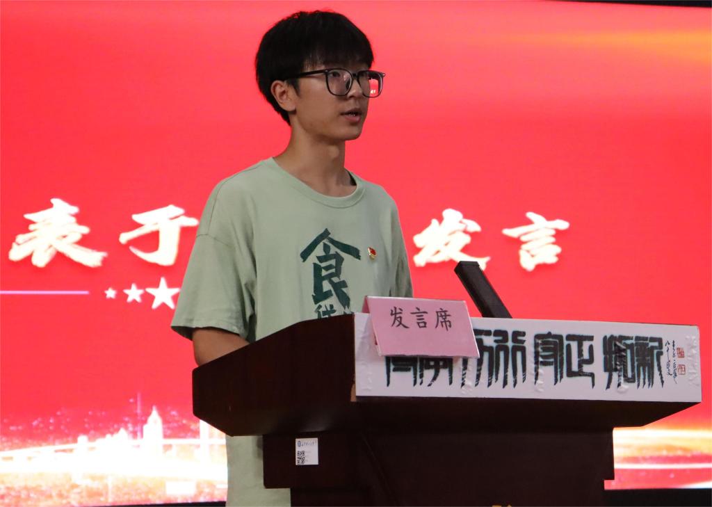 老生代表于泽宇向2022级新生描绘了四幅画,介绍他眼中的长理。分别是学习在长理、探索在长理、创新在长理、生活在长理。他希望,大一新生尽快成熟起来,从现在就开始放亮双眼,积极探索,学着做一个大写的人、一个有独立人格的人。同时于泽宇向新生表达了自己的期望:希望大一新生能在短暂的大学四年时光里找到家的感觉,收获属于自己的那一份美好与独特的青春记忆。