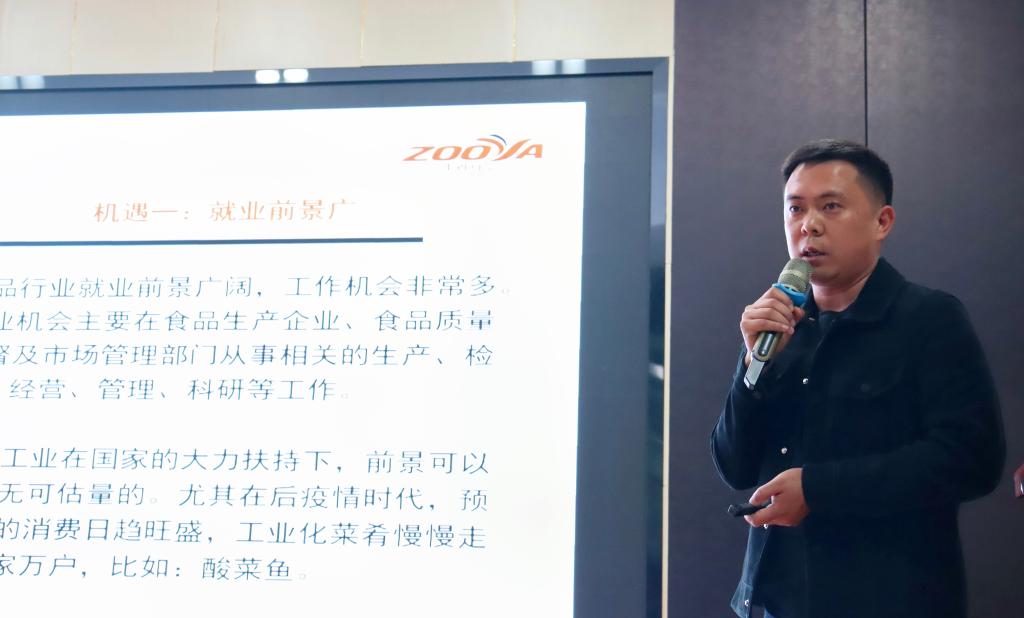 校友袁清龙目前担任湖南中雅国际食品有限公司董事长,湖南荟鲜森食品科技有限公司总经理职务。他以“热爱,坚持”为题,与同学们分享如何进行职业选择,同时还分享了在食品领域成功的其他校友。