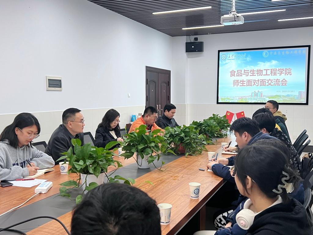 为更好地了解学生们的在校情况,解决同学们近期面临的学习、生活方面的问题,2023年3月29日晚食品与生物工程学院在工三A349召开“师生面对面”交流会。食品学院组织各班级学生代表参与此次交流会,与老师们共同交流近期发现的问题,提出问题并寻找解决方案。本次交流会的参会老师包括院长程云辉、党总支副书记练黎旋、副院长许宙、副院长方芳、辅导员王凤。