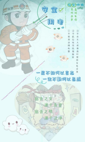在寝室海报设计大赛中,同学们结合财产安全、人身安全、网络安全、消防安全等多个方面进行创作,线上寝室知识竞赛内容涵盖紧急情况应对措施、安全理论常识、卫生安全相关法律法规等内容,200余名学生参与答题。通过本次海报设计大赛和知识竞赛,不仅提高了学生对安全事故的警惕性和防范能力,同时筑牢同学们心中的寝室安全防范意识,培养安全责任感