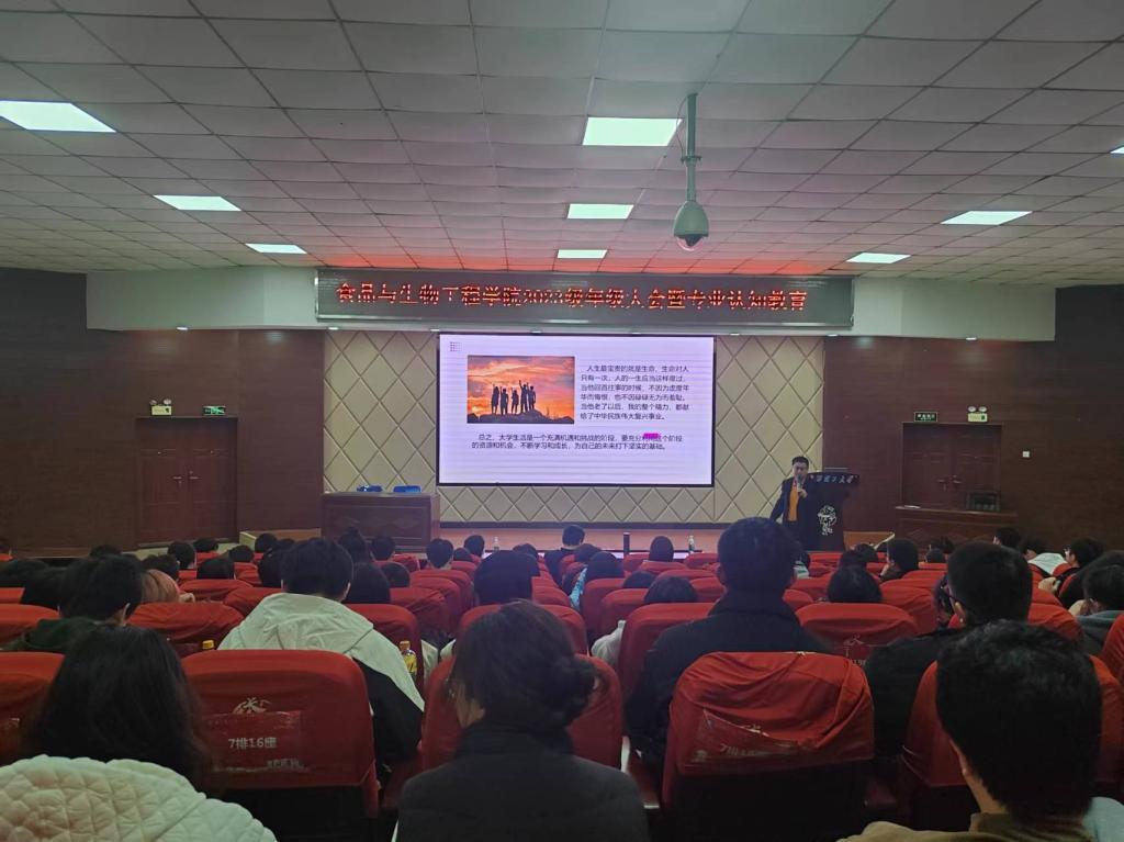 为进一步做好学院2023级新生专业认知教育,加深新生对学院、专业的认识程度,增强专业认同感,激励2023级新生在新学期继续努力学习,3月17日晚,食品学院于文科楼A200举行2023级年级大会暨专业认知教育。会议由年级辅导员兰贵辉主持,学院党委书记高顺利、院长王建辉、副书记练黎旋、副院长方芳出席此次活动,2023级全体新生参加。
