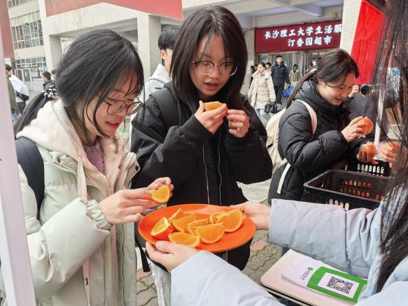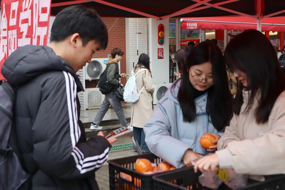 尽管春寒料峭、细雨纷飞,志愿者们的服务热情却空前高涨。据统计,食品学院前后六批志愿者共计59人,累计销售脐橙690.79斤,服务师生220余人次。在活动过程中,食院学子充分发挥专业优势,将学科知识与实践活动相结合,积极宣传推广坪山村脐橙,提升品牌知名度。并主动邀请大家品尝脐橙,讲解选购技巧,帮助师生挑选橙子,现场氛围轻松愉快。一位保安同志表示:“购买你们的脐橙啊,不仅放心,更被你们的热情打动,心情也变好了。”