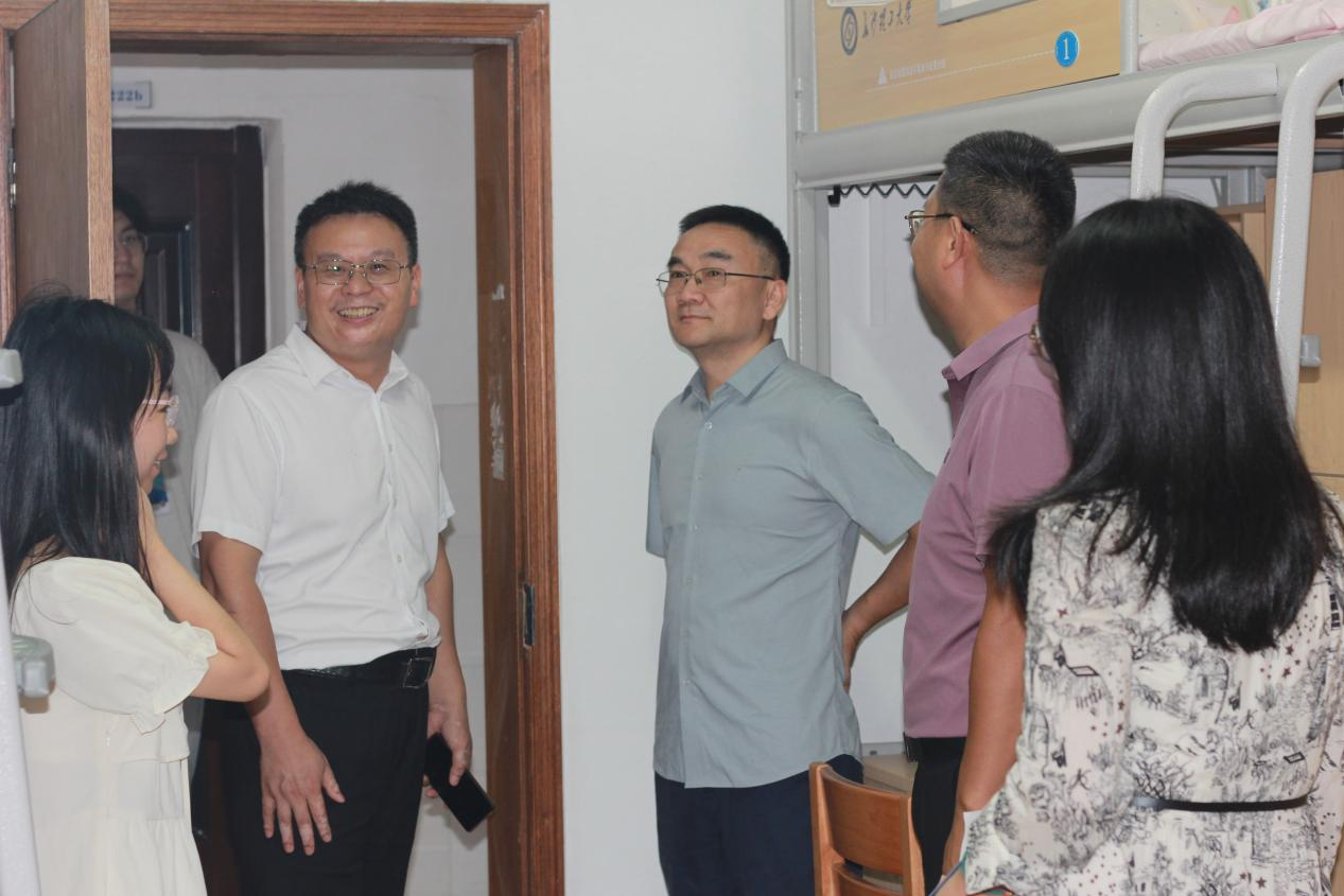 为深入了解2025级新生入学后的生活与适应情况,9月13日,食品学院领导班子、新生班主任、学工办老师等前往新生宿舍敏行轩2栋、弘毅轩4栋,弘毅轩1栋,为新生送上关怀与问候。