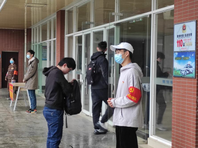 在烟雨连绵的天气下,党员同志们坚守岗位。学生党员于每日早晨745-800及中午1345-1400上课高峰期分别在工科三号楼正门和侧门进行值班。他们认真督促上课同学佩戴口罩,为没有佩戴口罩的学生发放口罩,并积极宣传疫情防控知识,使同学们充分认识到当前疫情防控形势的严峻性,这让同学们感到十分暖心。