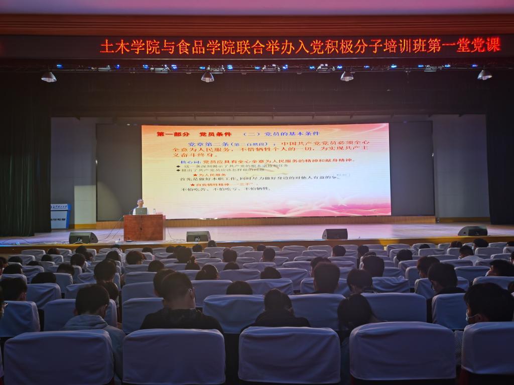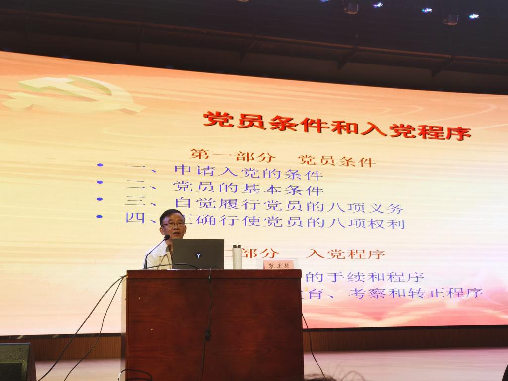 4月15日晚,食品学院于金盆岭校区五教大礼堂开展《党员条件和入党程序》专题党课。本次党课由437必赢会员中心原副校长黎正稳教授主讲,本期积极分子培训班全体学员参加。
