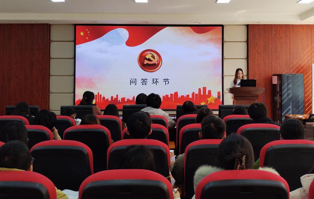 小组汇报环节,研究生党员伍紫璇进行理论宣讲。她从提升网络安全意识、网络安全实例以及筑牢网络安全防线三个方面阐述了加强网络安全的重要性,以及党员如何践行党的二十大精神宗旨。最后,研究生宣讲小组以知识问答的形式,进行了网络安全相关知识科普,加深同学们对网络安全知识的学习。