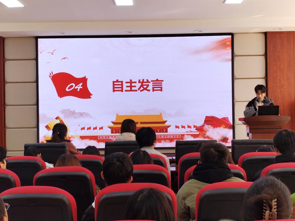 自主发言环节,陈玉来、施毅、娄佳同志分别从国家安全的重要性、如何增强国家安全意识以及青年如何维护国家安全三个方面进行。施毅同志通过分享新时代下我们所面临的安全挑战,提出我们应该时刻注意意识形态方面的安全问题,加强思想建设同时规范互联网文明,我们自身应做到言行规范、保持理智、具慧眼担大任。