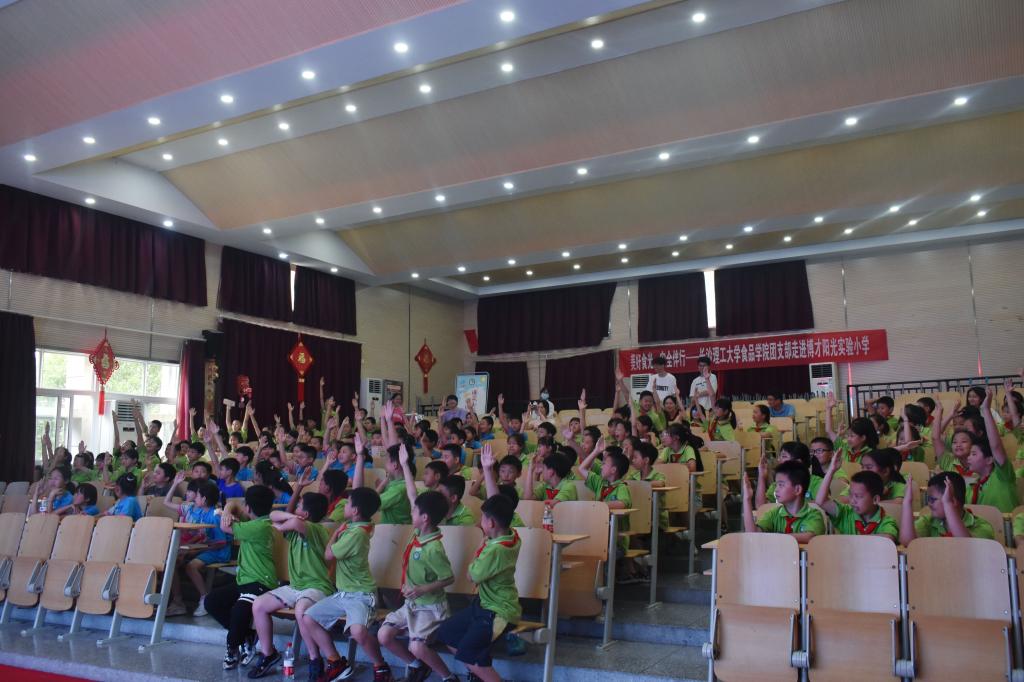 6月16日,博才阳光实验小学活动室内百余名学生争相举手抢答。当天,437必赢会员中心食品学院生物2002班团支部到此,为小朋友们带来了一场生动有趣的食品安全知识宣讲活动。