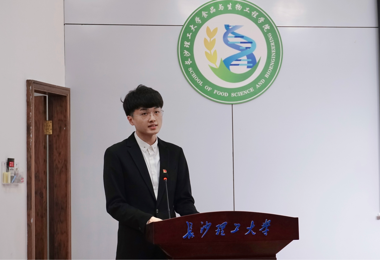 6位优秀学生代表作交流。肖锦湘作为保研学生代表,强调了学习的重要性,呼吁大家从大一开始就要打牢基础,力争上游。秦欣雨和刘洋作为大二才转入食品学院的学生分享了自身学习经验以及致力于专业研究和深造的心路历程;刘咏翰分享了考公务员经历和本专业就业建议;温暖、郭宇则饱含对本专业的热情和热爱寄语学弟学妹们能坚守初心,争做新时代青年。