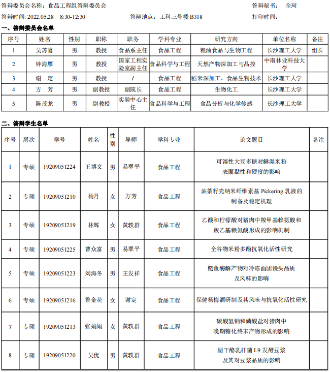 2022年食品与生物学院研究生论文答辩安排表(四)