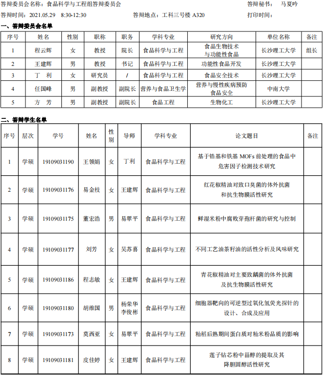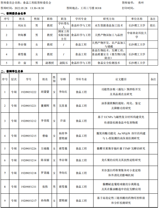 2022年食品与生物学院研究生论文答辩安排表(二)