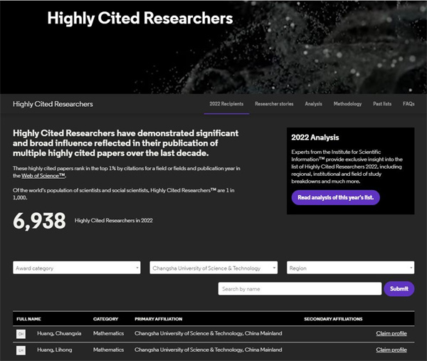 必赢官网两位学者入选科睿唯安2022年度全球“高被引科学家”榜单