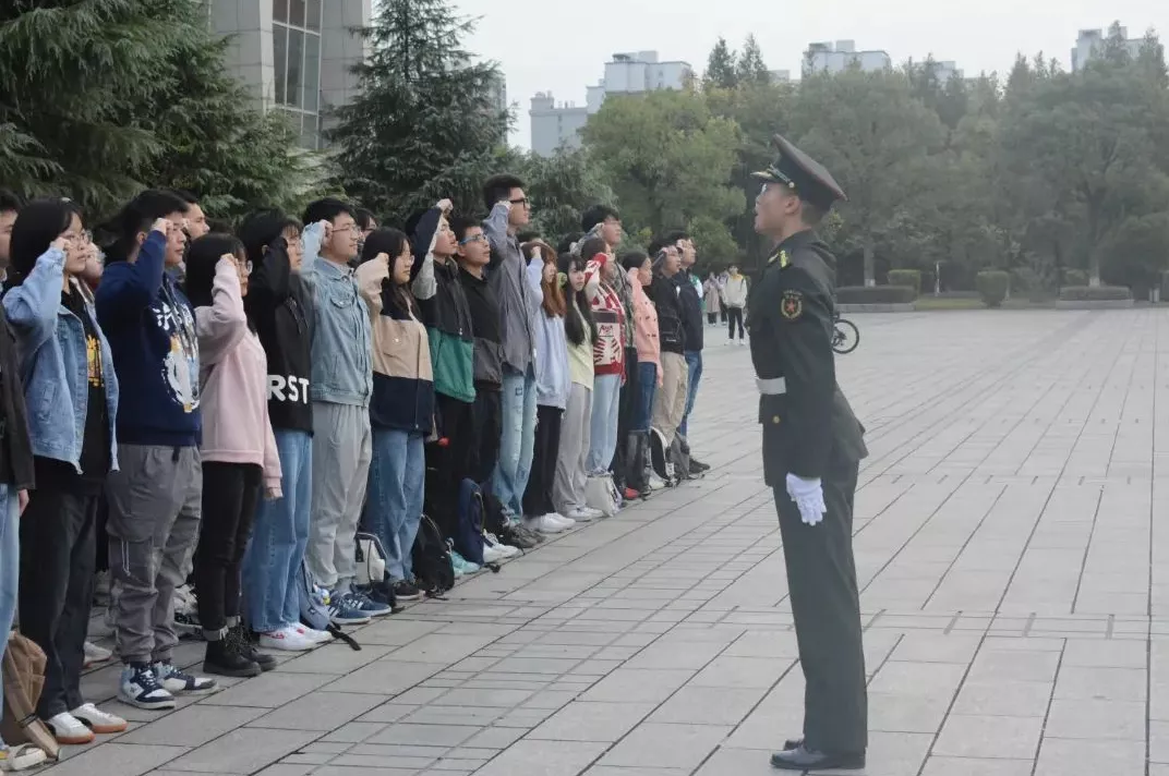 升旗仪式伊始,由国旗班介绍升旗仪式流程并宣布升旗正式开始。升旗仪式第一项,迎国旗。随着一声令下,国旗班全体成员,昂首挺胸地踏入国旗台前。紧接着是升旗仪式第二项,升国旗、奏国歌。在参加升旗全体人员的注视下,升旗手庄严地将红旗升到437必赢会员中心的上空,国旗伴随着嘹亮的国歌缓缓升起。升旗仪式第三项,国旗下宣誓。在国旗班成员的带领下,全体数统学院学生面向国旗庄严宣誓。升旗仪式结束后,崔培东提醒同学近期天气变化较大,记得增添衣物,保持身体健康,以一个最佳的状态去面对之后的学习和生活。