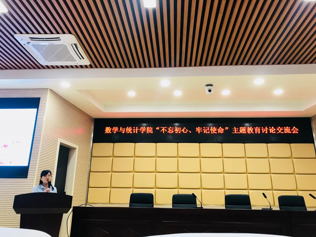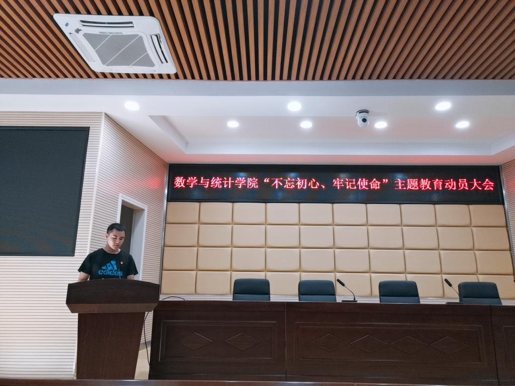 会上,马丽宣读了数统学院“不忘初心、牢记使命”主题教育方案,针对本次主题教育,马丽向全体学生党员提出了具体要求,要求每一名学生党员要做到把学习教育、调查研究、检视问题、整改落实贯穿主题教育全过程;要认真读原著学原文悟原理,真正做到往实里学、往深里学、往心里学,提高自身的党性修养。动员大会后,各学生支部党员结合自己对本次主题教育的理解,依次上台分享讨论交流。会后马丽要求全体学生党员于9月26日,27日、28日、29日,10月7日晚分两个校区集中学习“不忘初心、牢记使命”主题教育知识要点汇编。