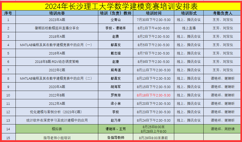 2024年全国大学生数学建模竞赛将于9月5日至9月8日举行,为了提升学生数学建模能力,7月30日,由数统学院承办的必赢官网2024年全国大学生数学建模竞赛暑期培训班正式开课。此次数学建模竞赛暑期培训班得到了学院领导的高度重视,7月11日召开了2024年数学建模竞赛指导教师会议,并成立了指导教师团队,制定了2024年数学建模竞赛培训安排表,累计培训13次,52课时,模拟竞赛1次。