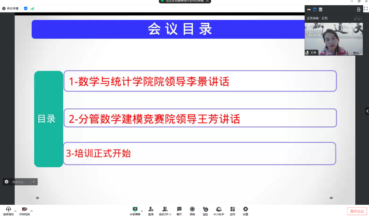 开班仪式上,数统学院副院长李景、分管学科竞赛的党委委员王芳对今年的培训工作分别提出了要求与希望。