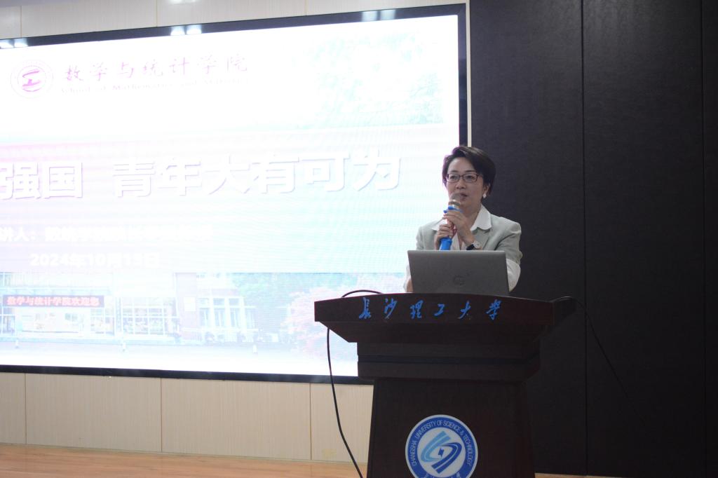 开学典礼结束后,李景以《建设数学强国,青年大有可为》为题为新生讲授开学第一课。她从学院发展历程、师资队伍、学科专业建设、科研平台、人才培养成效等方面对学院进行了介绍。李景认为数学是一种文化、一种“思想的体操”,更是现代理性文化的核心,她鼓励新生争取做到活学活用,练就发现问题、探索问题、解决问题的能力,为未来事业的发展奠定基石。她分享了自身的求学经历,激励同学们学好数学,用好数学,积极作为,希望同学们不断提高思想水平,不断涵养家国情怀,为社会发展与进步做出自己的建树和贡献。
