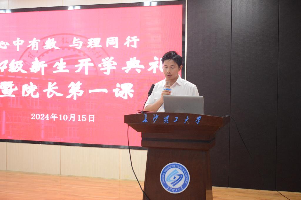 10月15日,数学与统计学院在云塘校区工三A307举行2024级新生开学典礼暨院长第一课。学院党委书记邓崛峰、副院长李景、纪委书记仝青山、副院长胡海军、副院长李姣、数学2401班班主任都昌发和年级辅导员刘晓丹出席,2024级全体本科生参加。会议由学院党委副书记兼副院长郑忠辉主持。