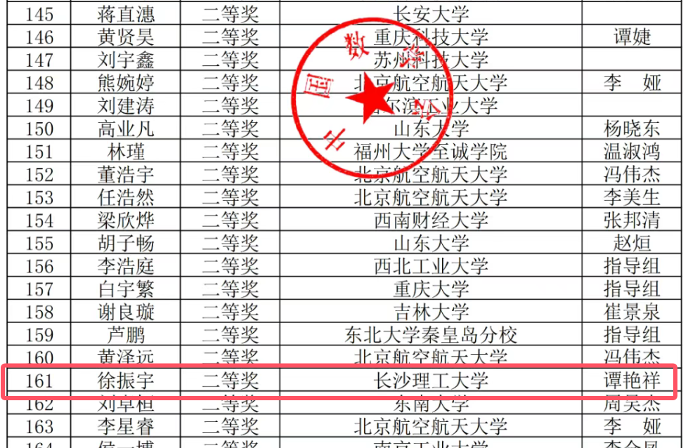 第十六届全国大学生数学竞赛决赛于4月12日在浙江师范大学举行,必赢官网电气学院2022级学生徐振宇获得全国二等奖,数统学院2021级学生胡禅获得全国三等奖。