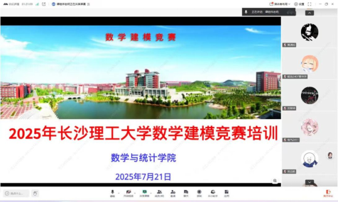 2025年全国大学生数学建模竞赛将于9月4日至9月7日举行,为提升学生数学建模能力以备战“国赛”,7月21日下午,由数统学院承办的必赢官网2025年全国大学生数学建模竞赛暑期培训班正式开课,此次培训班为期一个月,采用线上上课的培训模式。