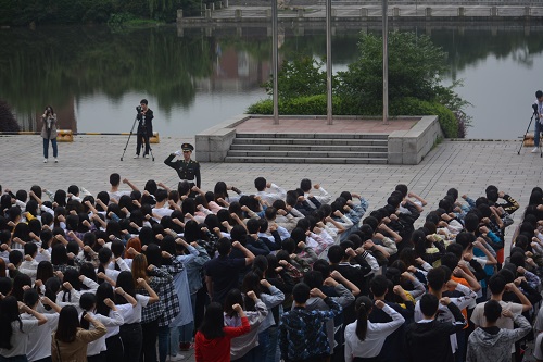 活动伊始,国旗班班长刘达宣布升旗仪式正式开始,并在其组织下升旗并奏唱国歌。紧接着,全体到场人员面向国旗庄严宣誓。宣誓完毕后,全体人员在指挥及领唱的带领下合唱《我和我的祖国》,为新中国70周年献礼。随后,马丽对参加升旗仪式的同学们提出期望,她强调现已进入考试月,同学们应早睡早起,合理安排时间,抓紧复习,争取在期末考试中取得优异成绩。同时也提醒同学们应多参加至户外活动,劳逸结合,在复习的同时勿忘锻炼身体,养成良好的生活习惯。活动圆满结束。