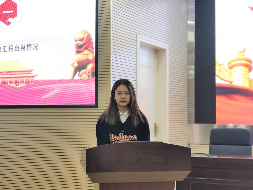 会议第一项,十一名发展对象依次汇报自己对党的认识、入党动机、本人履历、家庭和主要社会关系情况以及需要向党组织说明的问题。她们结合自己在递交入党申请书之后通过培训班和自学学到党的理论知识谈自己对中国共产党的认识,并表示她们大多受到新闻中以及身边的优秀党员的感染,相信中国共产党有能力带领全党全中国实现民族复兴、国家富强,同时也更加坚定了加入中国共产党的决心。
