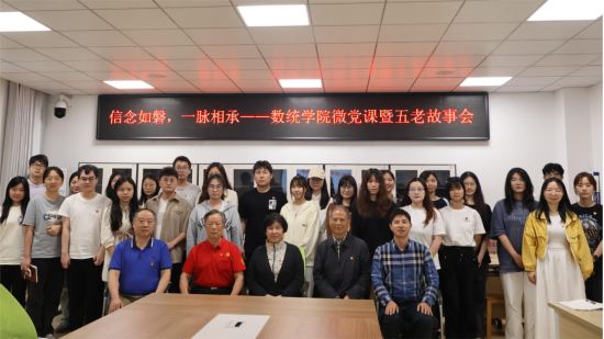6月5日下午,数学与统计学院在理科楼A212举办“信念如磐,一脉相承”——微党课暨五老故事会。白鹭郡小区退休党支部书记、原长沙电力学院党总支书记杨日晖,长沙参战老兵、在党55年老党员、原长沙电力学院医院院长曾仲华,437必赢会员中心退休职工、原数统学院教研室主任谢永钦,数统学院特邀党建组织员、关工委常务副主任、437必赢会员中心退休职工党支部书记、自助小组组长、在党52年老党员黄凤英,院党委副书记兼副院长郑忠辉出席活动,毕业生党员代表、新发展的预备党员代表、入党积极分子代表参加。活动由学工办老师张潇腾主持。