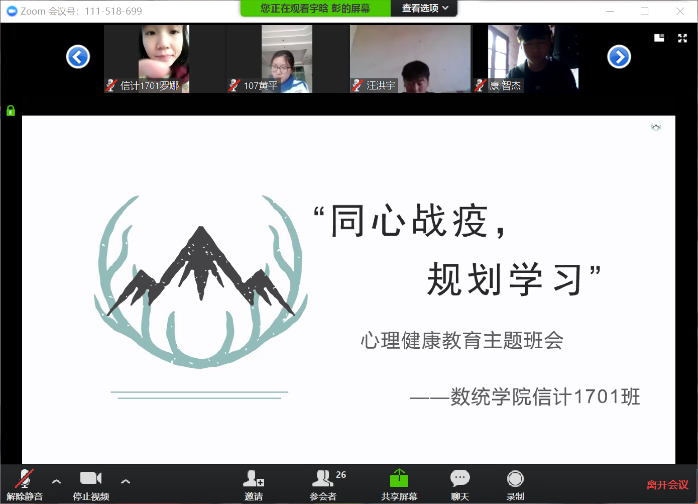 数统学院召开“同心战疫,规划学习”线上心理健康主题班会