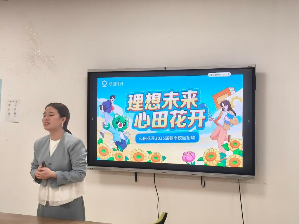 为拓宽毕业生就业渠道,搭建学生与优质企业的交流平台,10月28日下午,我院特邀成都心田花开心语教育管理有限公司在理科楼A212会议室举办专场招聘宣讲会。