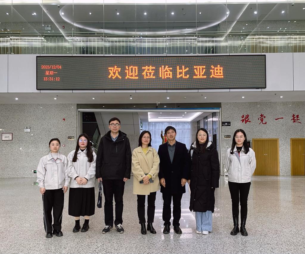 在长沙市比亚迪汽车有限公司,郑忠辉与彭峥参观了公司的展示馆,了解了公司的发展历程、公司理念、业务板块等情况,观摩了汽车生产线,了解了汽车从零部件到整车交付的全过程。郑忠辉与公司华中地区人力资源部招聘负责人罗雪深入沟通,她详细介绍了公司的人才培养规划、竞升机制、公司福利等情况,表示欢迎学生到公司实习和就业。