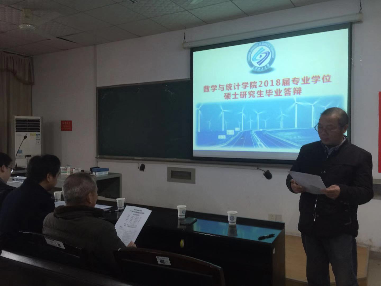 12月20日下午2点,在理科楼A419进行了数学与统计专业2018届下半年专业学位硕士研究生毕业论文答辩会。答辩委员会主席由应用统计专业学科带头人梁小林副教授担任,委员由黄创霞教授、龚红仿副教授、戴志锋副教授,以及湖南大学胡宗义教授组成。8名答辩学生及其它专业部分研究生参加了此次答辩会。会议由梁小林副教授主持。