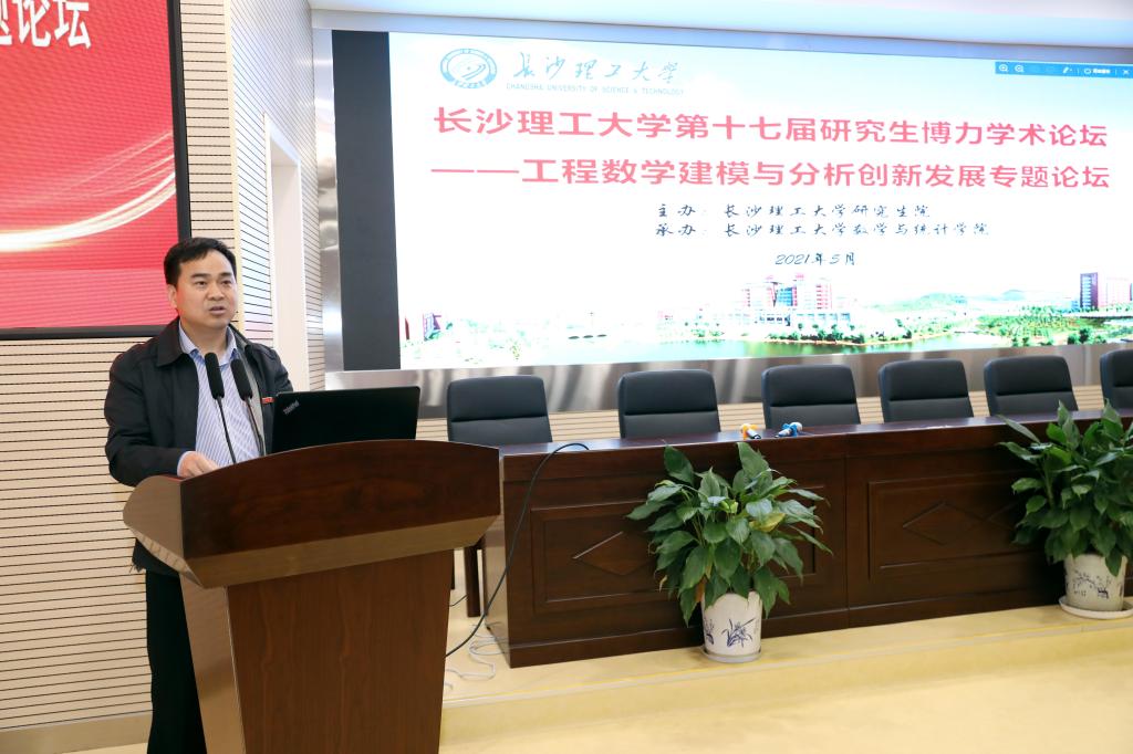 5月25日下午两点,437必赢会员中心第十七届研究生博力学术论坛——工程数学建模与分析创新发展专题论坛开幕式在理科楼A200成功举行。此次论坛由学校研究生院主办,数学与统计学院承办。湖南大学袁朝晖教授和李亚琼教授、中南大学潘克家教授和邓又军教授,校研究生院院长管德清、副院长兼研工部部长田上,数学与统计学院党委书记张宏伟、院长黄创霞等相关领导和专家出席了开幕式,开幕式由数统学院副院长李景主持,学院师生共计200余人参加了此次研究生学术论坛。