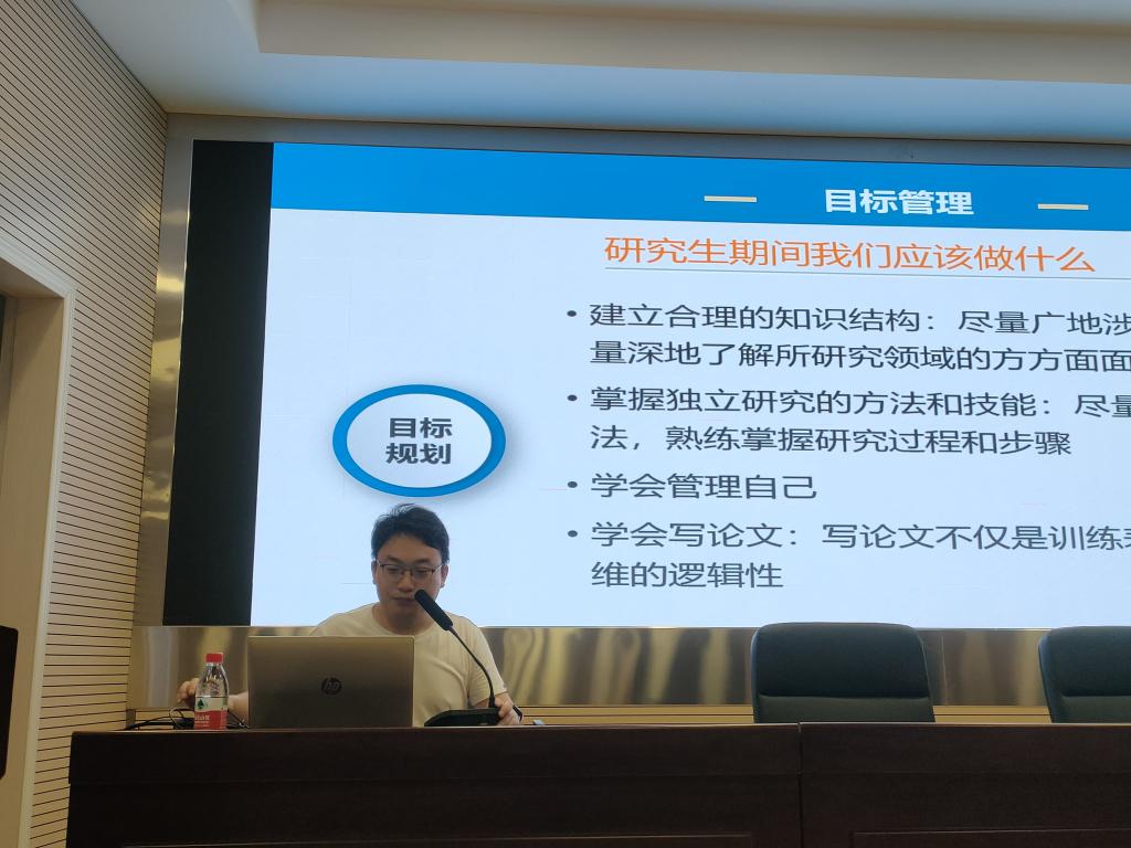 曹杰主讲题目为《穿越学术丛林:我的探索之路与感悟分享》。他结合自身的情况与科研体会,深入分享了在学术道路上的探索与感悟。他建议研究生们一是要做好目标管理,明确目标能指引方向;二是要做好时间管理,强调高效利用时间的重要性;三是要做好情绪管理,保持积极心态;四是要做好写作管理,构思和精炼语言,使文章更具吸引力。他的分享为研究生们提供了宝贵的学术经验,也为大家的科研创新之路提出指导和建议。