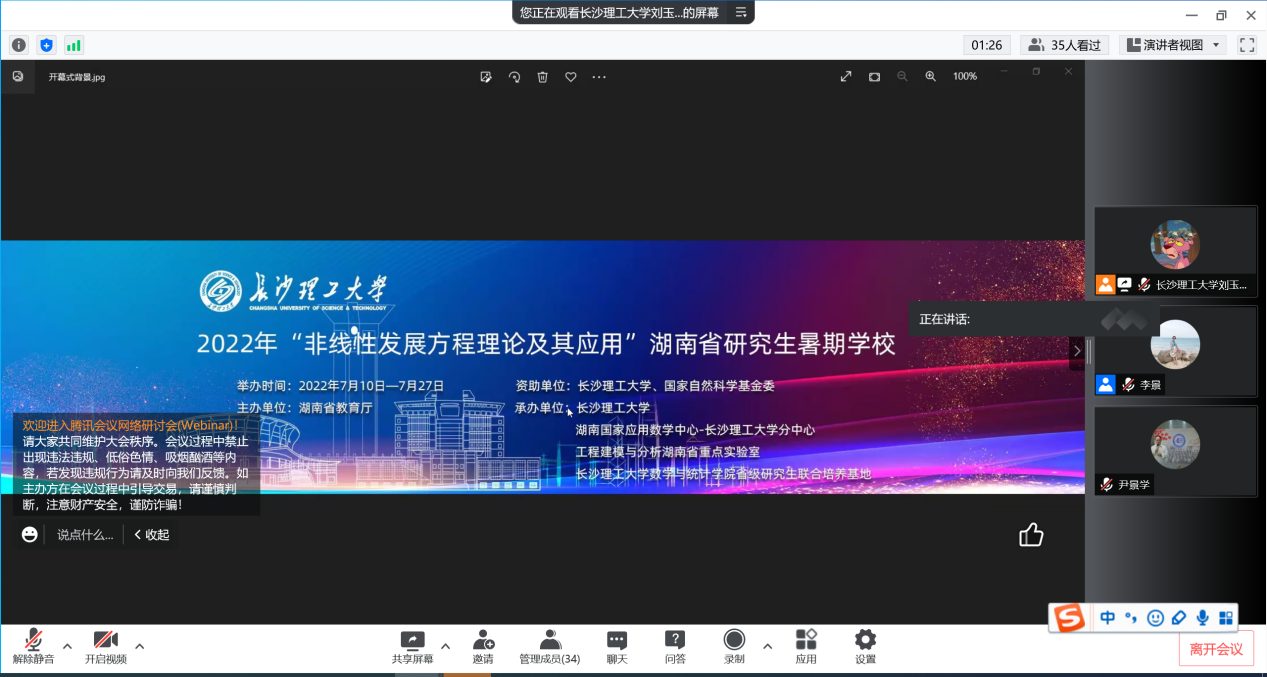 “非线性发展方程理论及其应用”湖南省研究生暑期学校闭幕