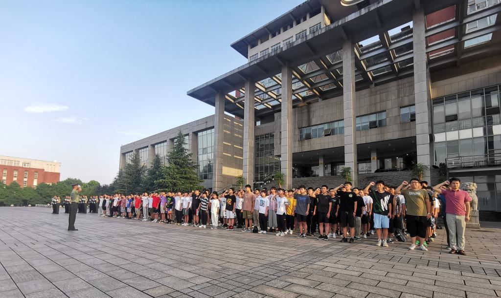 国旗下,龙承运鼓励同学们要在党史学习教育中进一步坚定理想信念,在专业学习实践中练就过硬本领,勇担时代责任,牢记历史使命,争做新时代有为青年。龙承运还对学院宿舍调整工作进行了具体布置。