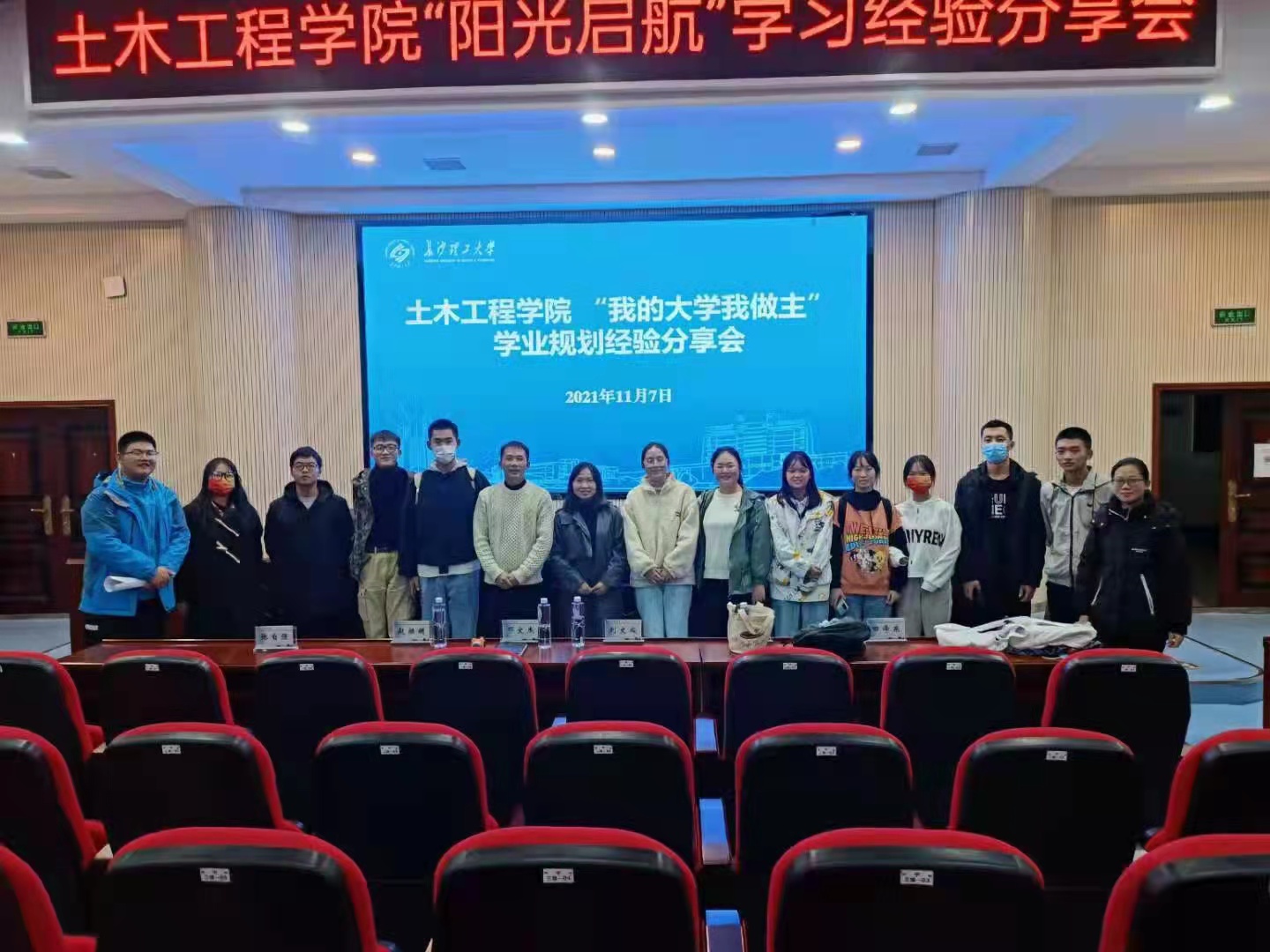 参观活动后,还先后组织了举办“阳光启航”学习经验分享会和校史馆参观活动。学校优秀毕业生赵麒麟结合实习经历,讲述了自己如何实现在校生向职场人的转变。他还以实习经历诠释了“越努力越幸运”的观点,鼓励同学们迎难而上,挑战自我,实现超越。国家奖学金获得者、学生党支部副书记、保研同济大学的谭松梨则结合专业学习、暑期夏令营经历、自身为人处世原则三个方面为同学们做了深入分享。在工作方法方面她谈到“小事快做,大事匀做”的原则。斩获多项科技赛事全国大奖的张自强则结合自己连续三年的参赛经历分享了自己高校备赛的“五个一”原则,即找到一个好指导老师,组建一个好的团队,找到一个好的项目,做好一份策划方案,认真对待每一次比赛。学院学生党建中心副主任、湖南省党史知识竞赛二等奖获得者田泽东则从什么是学生干部、为什么做学生干部、怎样做学生干部三个方面分享了自己的工作初心、责任、成长与收获。活动最后,院党委副书记黄阿明做总结讲话,她鼓励大家向优秀学长学姐学习,让优秀成为习惯,用奋斗和汗水绘写精彩的大学生活。