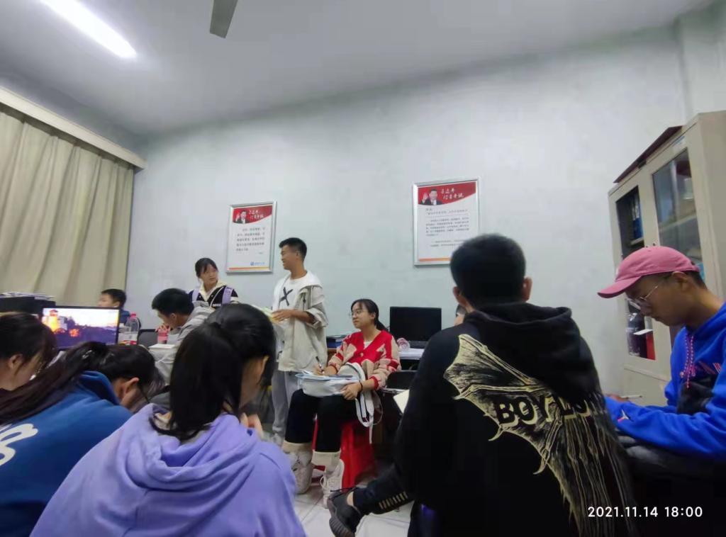 1114日晚,土木学院于办公大楼107办公室召开2021级本科生第十次年级干部培训会。会议由辅导员邓文杰主持,20余位年级组干部参与。