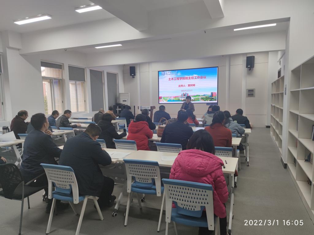 为切实提升班主任的专业素养和管理水平,加强班主任队伍建设。3月1日,土木工程学院在云塘校区工二A304召开新学期班主任会。学院党委副书记黄阿明出席大一和大二年级班主任、辅导员参加会议,会议由黄阿明主持。