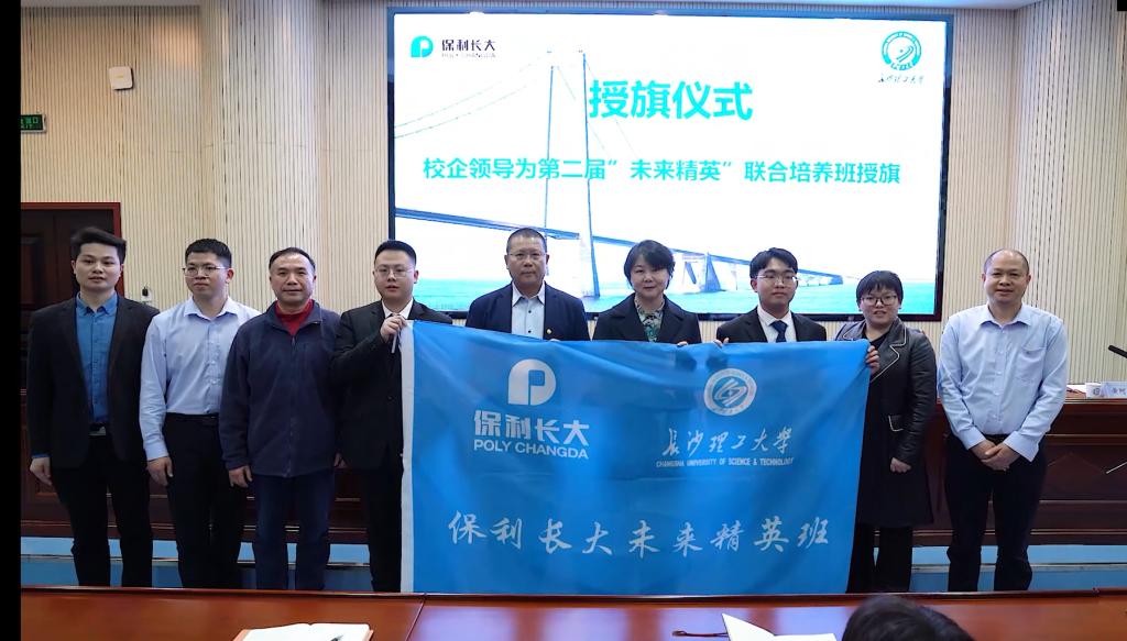 学员代表朱梓健讲到,非常感恩母校的悉心培养以及保利长大提供的广阔平台,他们定会加倍努力,努力成为交通行业中优秀复合型人才。随后,校企领导为第二届“未来精英”联合培养班进行了授旗,学员代表接过班旗后,全体学员进行了庄严宣誓。