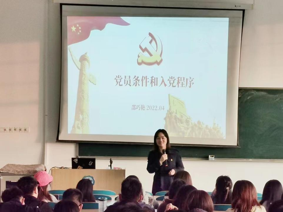 为提高入党积极分子的思想政治素质,严守党员发展“入口关”,4月19日晚,土木学院联合食品、水利和设艺学院在艺术楼A102会议室开展了第三十九期入党积极分子《党员条件和入党程序》专题党课,校党委组织部组织科科长邵巧艳老师应邀主讲,全体学员参加学习。