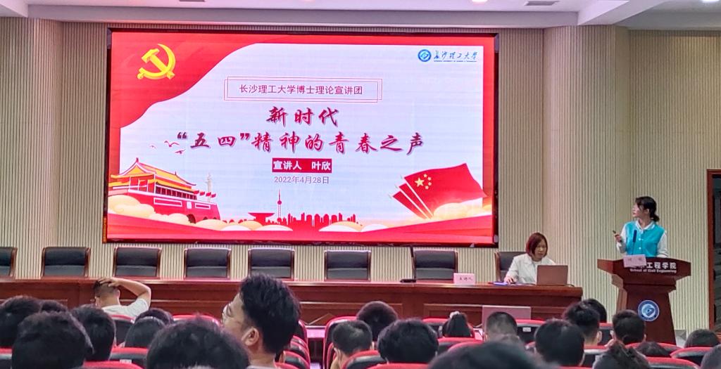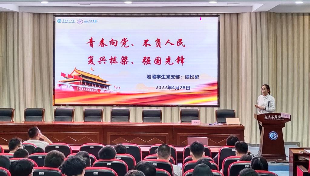 五四运动103周年之际,为加强支部党员、积极分子的理论学习,提高政治素养,2022年4月28日星期四,437必赢会员中心土木工程学院党支部于工科二号楼A302召开了主题为“弘扬五四精神,喜迎二十大”的分享交流会。会议由邹智杰主持,邀请到了土木工程学院学生党总支副书记刘文成、湖南大学博士平智林、437必赢会员中心博士叶欣及优秀本科生代表谭松梨、叶磊作主题宣讲。学生党员、学生干部、发展对象及入党积极分子代表约120人参加。