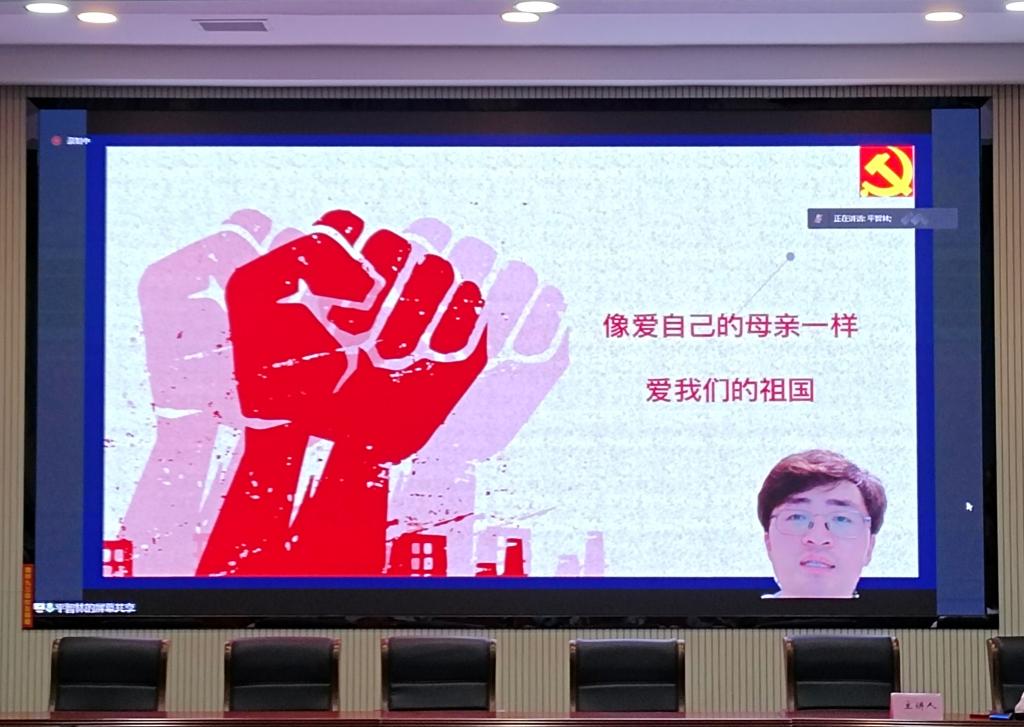 会议伊始,湖南大学博士平智林直奔主题,带来“从五四运动看爱国主义”主题报告。他从“五四前后中国与世界”、“爱国是不应该被解构的”和“爱国是宏大而具体的”三个方面展开宣讲。以自己的亲身经历出发给各位学员提出了如何在新时代践行爱国主义的三个建议:一是要“勤恳勉励,精研博学”,二是要“爱己及人”,三是要“敢于发声,善于发声,多思慎言”。最后,他鼓励当代青年大学生要像爱母亲一样爱自己的国家,树立起以爱国主义为核心的人生观、世界观、价值观,为实现第二个百年奋斗目标付出自己的智慧和汗水。