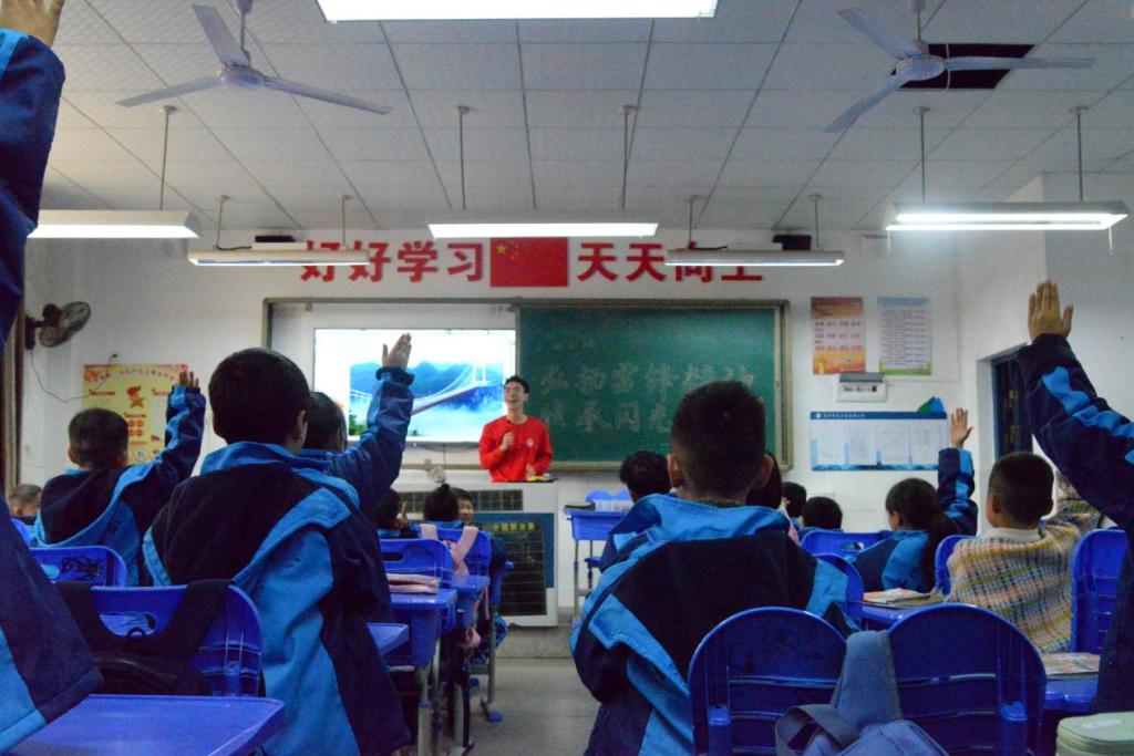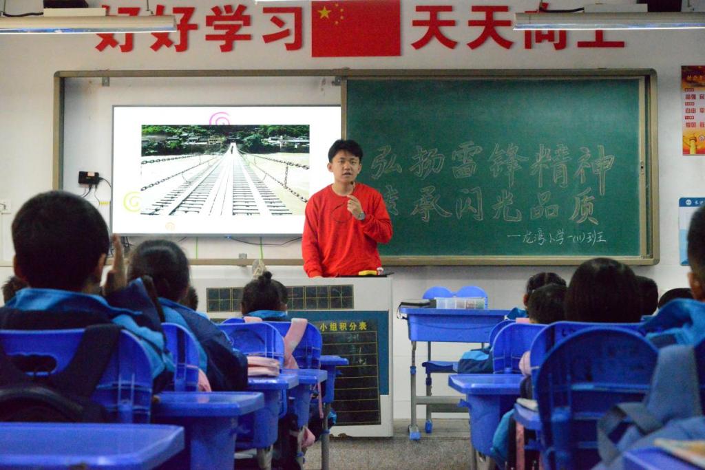 “是无数飞夺泸定桥的红军战士们用鲜血给我们换来了现在的美好生活,我长大以后也要像哥哥姐姐一样成为一名工程师, 为中国的桥梁建设贡献自己的力量!”宣讲结束后一年级11班的陈梓妍主动对宣讲团成员说到。