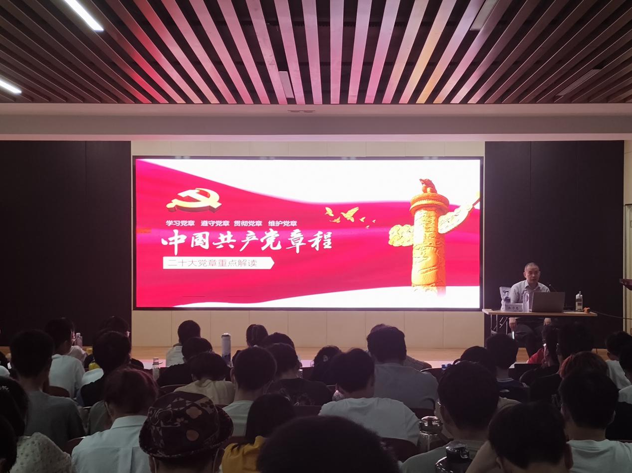 围绕《中国共产党章程(修正案)》,余乃忠从党章发展历程与历史地位、总纲与条文部分解读、二十大党章修改情况三方面出发,带领入党积极分子进行了深入了解,阐述了中国共产党章程的重要地位与二十大党章修改的历史意义。他指出,党章是统一全党思想和行动的基础,是保证党的纯洁性的武器,每位党员都有义务责任学习党章、遵守党章、维护党章。在授课中,余乃忠带领学员着重学习了二十大党章中50处修改内容及修改意义。他强调,修改党章深入学习贯彻党的创新理论的需要,是推进党和国家事业发展的需要,是深入推进新时代党的建设的伟大工程的需要,是贯彻落实党的二十大精神的需要,对党章的学习永远在路上。