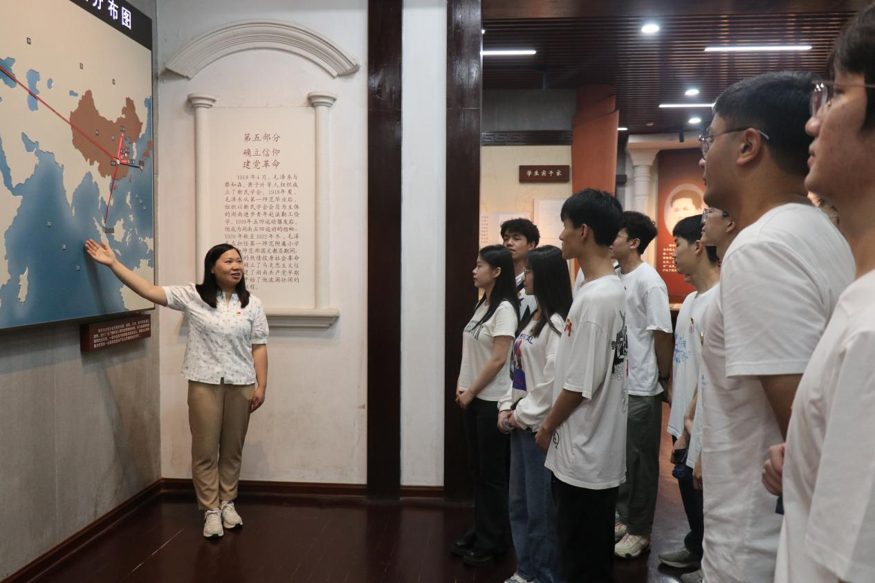 同学们仔细观看,认真听讲,时而驻足凝视,时而提出问题,在青年毛泽东的故事中领悟青春力量。这不仅使师生们对青年毛泽东的求学生涯有了更深刻的认识,也让他们对青年毛泽东的革命精神和崇高信仰有了更直观的感受。“每一处红色纪念地,每一处爱国主义教育基地,都是一处思想高地、精神殿堂。作为博士理论宣讲团的一员,我们的初心就是把每座精神高地,按照基地所承载的老一辈革命家的革命精神,把它更好地诠释和宣传”博士理论宣讲团成员黄文恺如是说道。“党课教育引领不是教师的‘独角戏’,而是师生情感共鸣的‘双边对话’,这个共鸣产生的最佳地方就是一个个红色基地。学院近年来探索行走的思政课--红色桥梁寻访,走着上的党课--红色基地沉浸式学习等形式,做到把教室小课堂同社会大课堂结合起来,把理论和实践结合起来,目的就是要引导青年大学生去切身体验、去辩证思考,希望能更有效引导同学们打好精神底色、夯实人生根基”学院副院长张永杰表示。