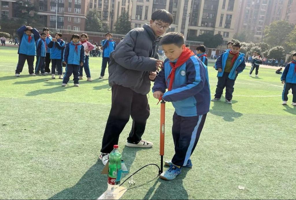 12月18日,学院工程力学专业学生党员志愿者在力学系主任彭旭龙的带领下走进龙湾小学,为小朋友们开设了一场别开生面的科普小课堂活动——发射水火箭为他们带来了一次难忘的科学探索之旅。